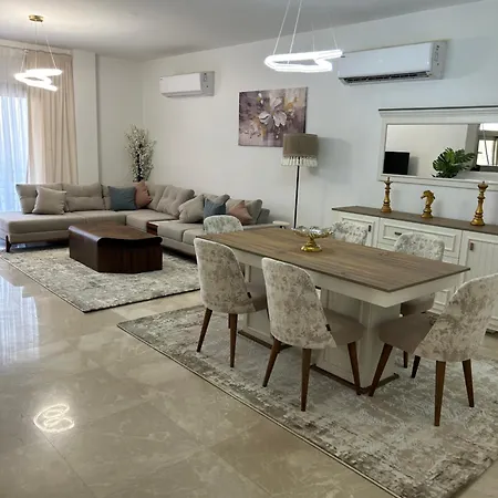Situated 4.7 km from the hallowed Al-Hussein Mosque, the 4-room Up Town Luxury Apartment Cairo also boasts easy access to El Giza train station which is nearly 30 minutes' drive away. The apartment has a terrace with views of the pool.